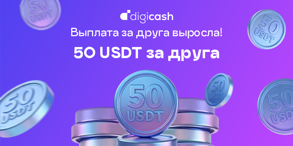 Рекомендуй DigiCash друзьям, близким и знакомым — и получай 50 USDT за каждого нового клиента, который оформит займ по твоей ссылке и воспользуется им не менее 5 дней.